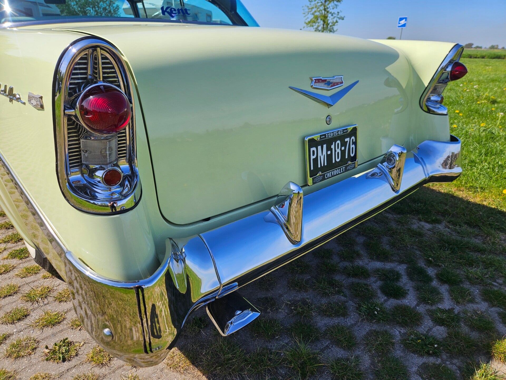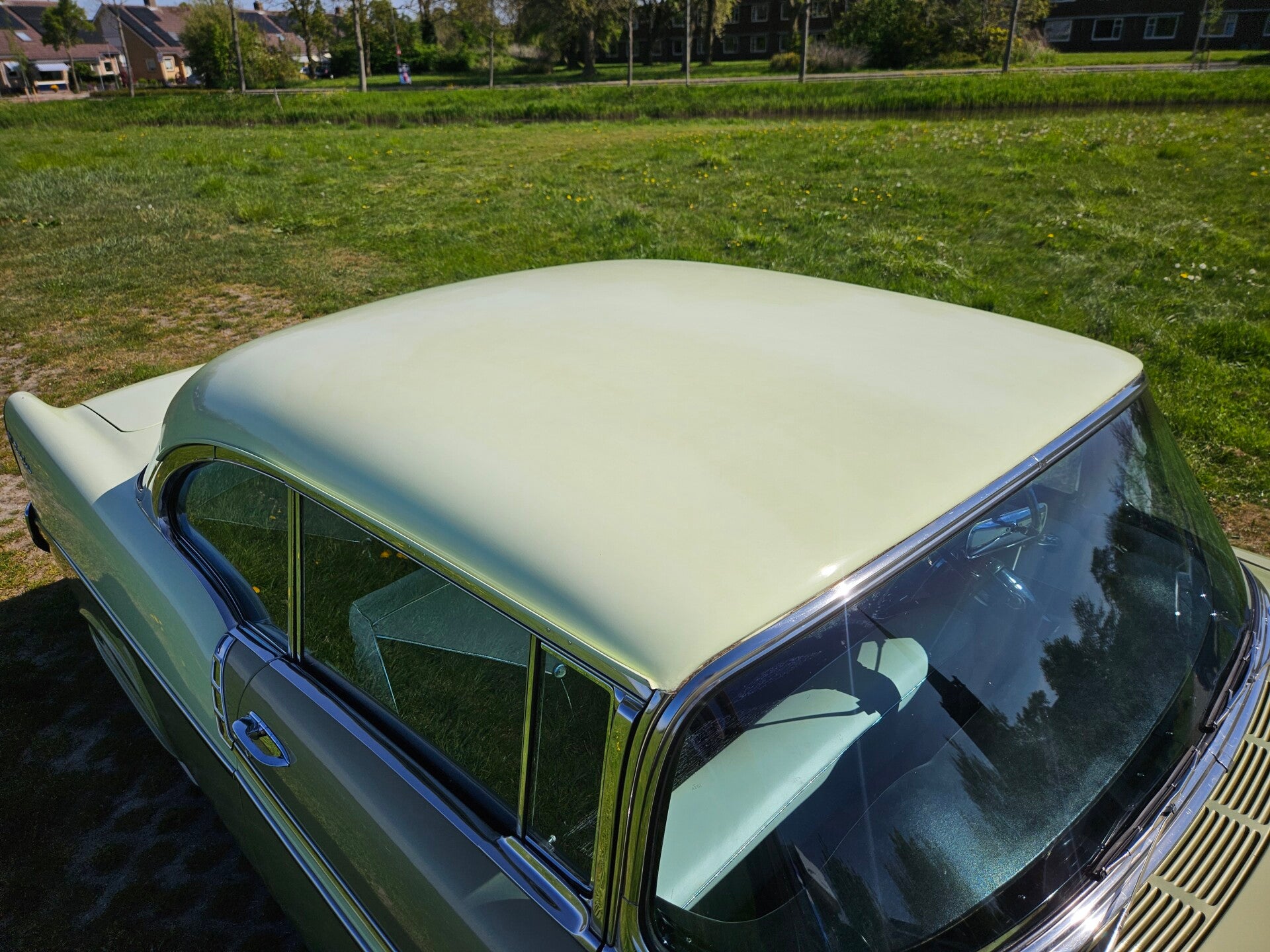 Lak en chroomwerk: De Bel Air is jaren terug volledig en netjes overgespoten in originele two tone kleuren, dus niet op ze ''amerikaans'' en zit dus rondom nog zeer netjes in het lak. Wel wat lichte craquelé in het lak. En zeer lichte gebruikers sporen rondom