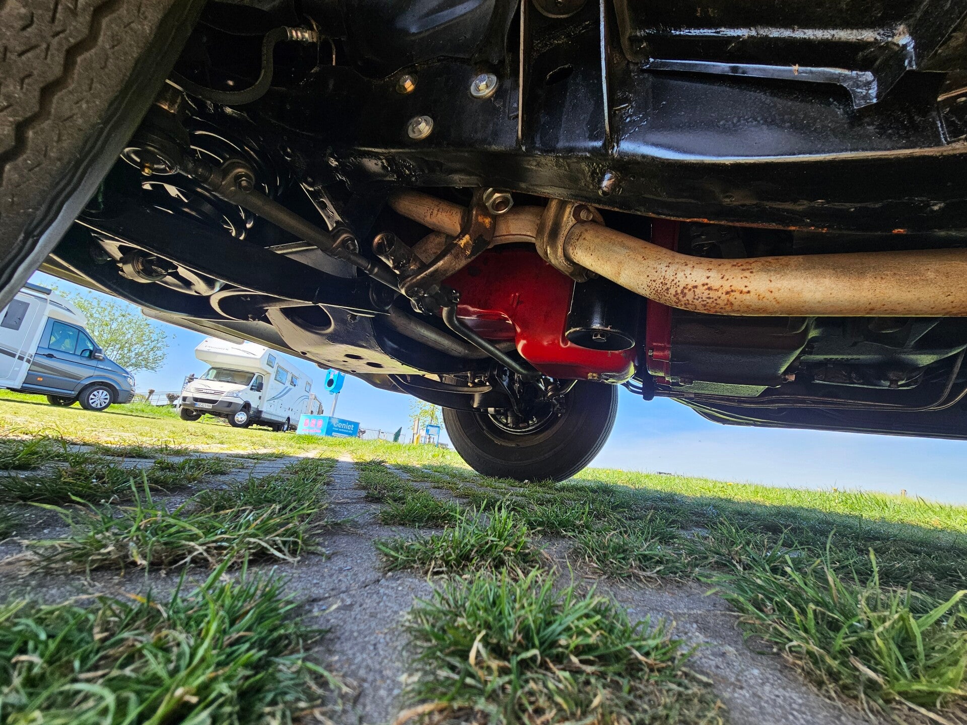 Chassis, ophanging en rubbers: Het chassis is strak zonder deuken, ook is het hele chassis roestvrij en niks rot. De wielkassen, bodem, dorpels etcetra is zeer goede en roestvrije staat. De ophanging is volledig vernieuwd en er is op niks bespaard. Alle rubbers zijn vernieuwd. Ook is er stuurbekrachtiging ingebouwd, alles nieuw.